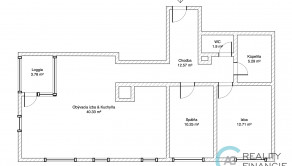 Pozostáva z 3och obytných miestností, vstupného priestoru, kuchynského kútu, kúpeľni, WC a loggie
