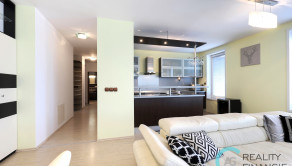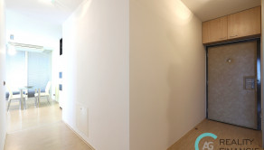 Po vstupe do bytu sa nachádzate na chodbe s rolldorom po celej dĺžke. Z chodby máte priamy vstup do 2och nepriechodných izieb ( spálňa a detská izba) a do obývačky prepojenej s kuchyňou s výstupom na loggiu. V priestrannej obývačke je klimatizácia a je priamo prepojená s kuchyňou .