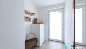 V rohu pri kuchynskom kúte je aj samostatna špajza, dosť priestranná napríklad aj na umiestnenie regálov. Útulnosť obývačky nám dotvorí krb, na ktorý je tu už urobená príprava.