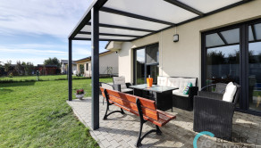 Z obývacej izby je východ na krásnu veľkú terasu s dvoma francúzskymi oknami.