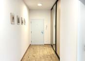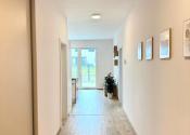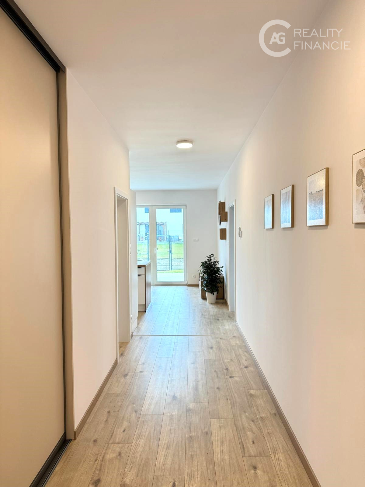 Po vstupe do bytu sa nachádzate vo vstupnej chodbe, z ktorej máte vstup do kuchyne spojenej s obývačkou, do kúpeľne a do spálne. Z obývačky máte priamy vstup na priestrannú terasu a záhradu. V obývačke sa nachádza klimatizácia. V byte je podlahové kúrenie a elektrické vonkajšie žalúzie.